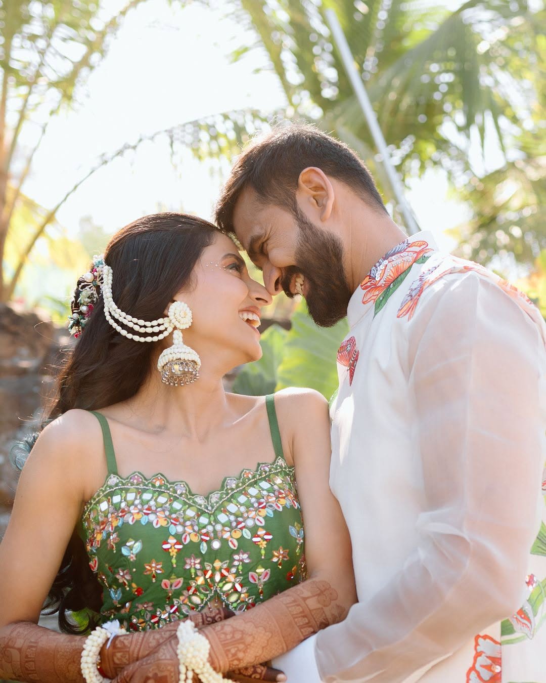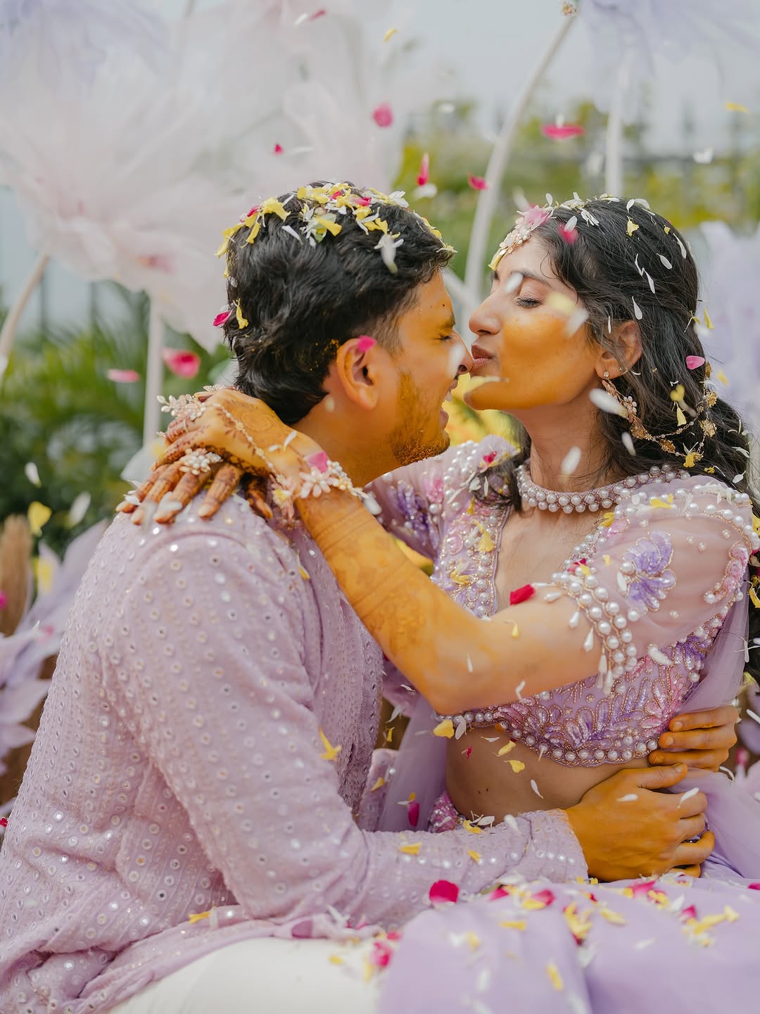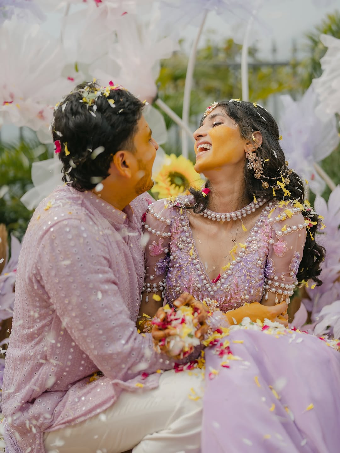 Creative couple portraits with floral showers