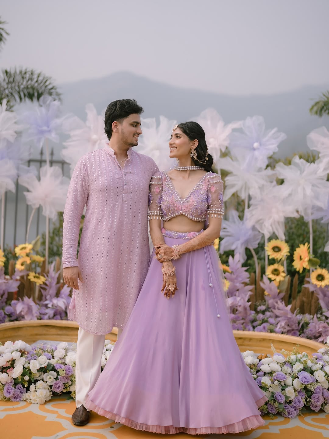 Our Phoolo ki Haldi setup brings a dreamy twist to the tradition. Imagine soft petals cascading around you as family and friends smear haldi with love – a celebration that feels like it’s straight out of a fairytale.